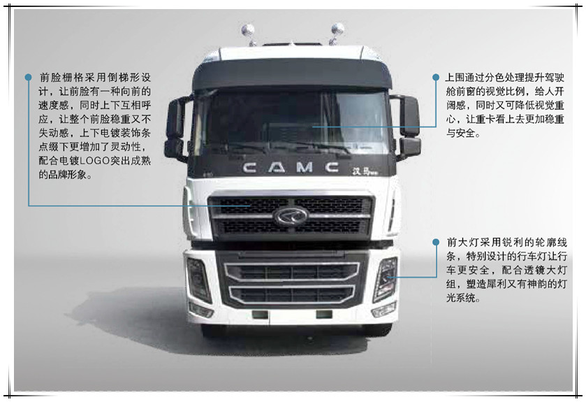 汉马H9低地板驾驶室车型在外观上进行了大刀阔斧的改动:运用豪华轿车的设计理念,结合现代建筑造型元素,使得整体线条更加简洁,层次分割更清晰,塑造出简洁、稳重、动感的视觉新体验,彰显奢华品牌新形象。整车在保留原有大气沉稳气质的同时更加时尚动感,非常符合现在不断年轻化的卡车司机群体的审美,开出去*相当吸睛。